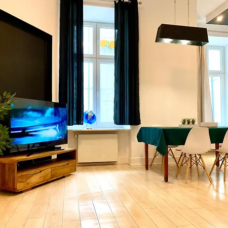 Ten apartament posiada pełnowymiarową kuchnię wraz z piekarnikiem i zmywarką do naczyń dla gości. Apartament jest położony 400 m od stacji metra Nowy Świat - Uniwersytet i w odległości kilku przecznic od Warszawa Powiśle.